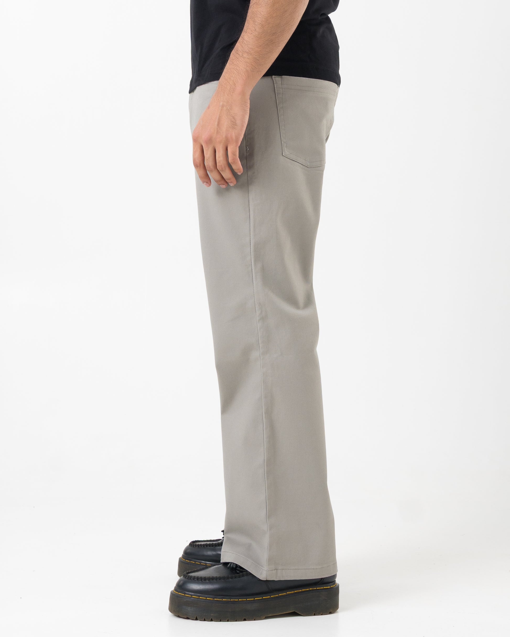 Bootcut silhouette with a clean drop — fitted through the thigh with a subtle flare below the knee. Structured like denim, feels like comfort wear.