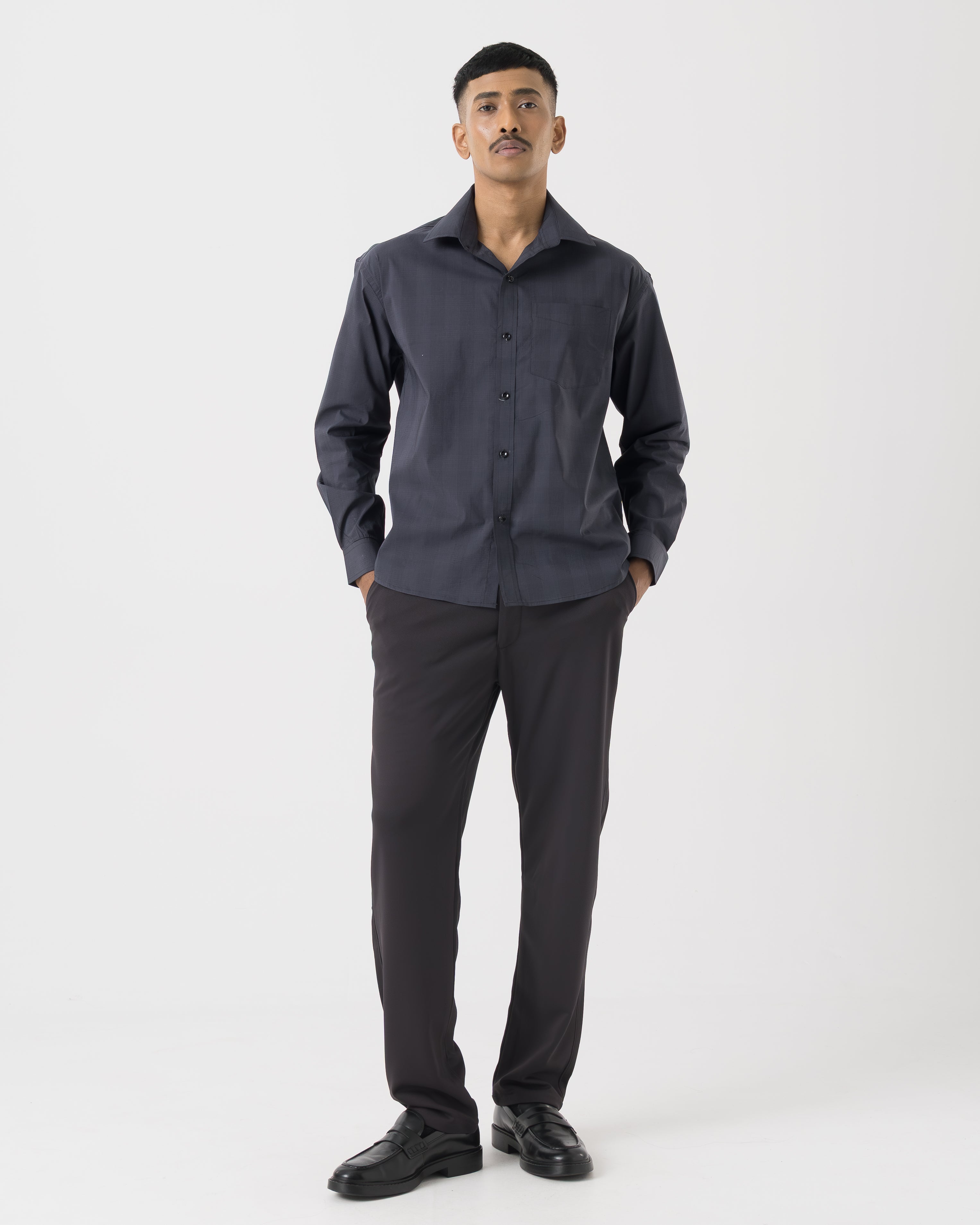 Smart straight fit with a clean fall from thigh to hem. Tailored enough to look sharp, relaxed enough to stay comfortable all day.